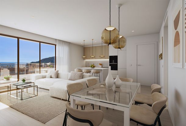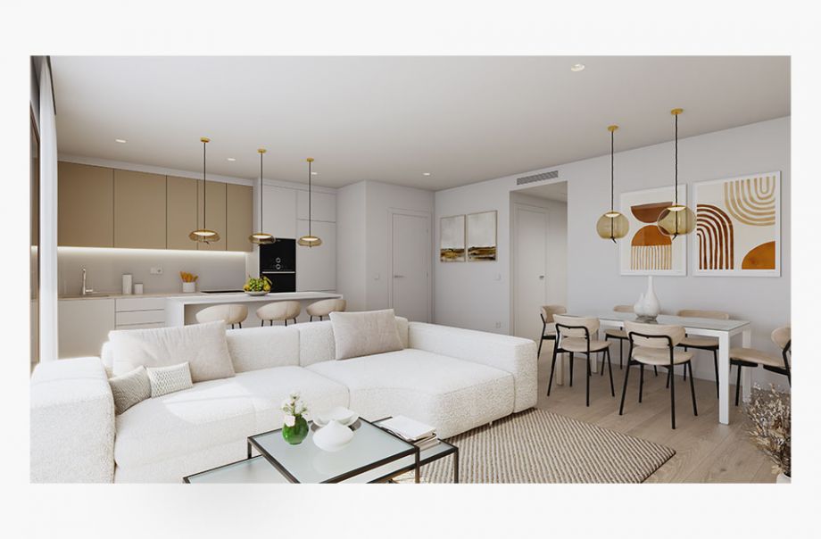 Descubre una nueva forma de vivir en la Cala de Finestrat, donde el diseño, la luz y la funcionalidad se unen para crear espacios interiores pensados para disfrutar cada momento. Esta exclusiva urbanización residencial en Benidorm ofrece apartamentos de 1, 2 y 3 dormitorios, además de espectaculares áticos con grandes terrazas, concebidos para adaptarse a distintos estilos de vida sin renunciar al confort ni a la elegancia. Las viviendas destacan por sus interiores amplios y luminosos, con distribuciones modernas que optimizan cada metro cuadrado. Los salones se integran de forma natural con las cocinas, generando estancias abiertas que favorecen la convivencia y multiplican la sensación de espacio. Los grandes ventanales permiten la entrada de abundante luz natural durante todo el día, conectando el interior con el entorno mediterráneo y creando ambientes cálidos y acogedores. Cada detalle ha sido seleccionado para ofrecer hogares actuales, eficientes y confortables, donde la calidad de los materiales, la estética moderna y la funcionalidad se combinan para crear espacios que invitan a vivirlos desde el primer día.