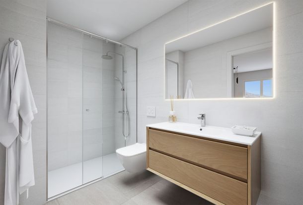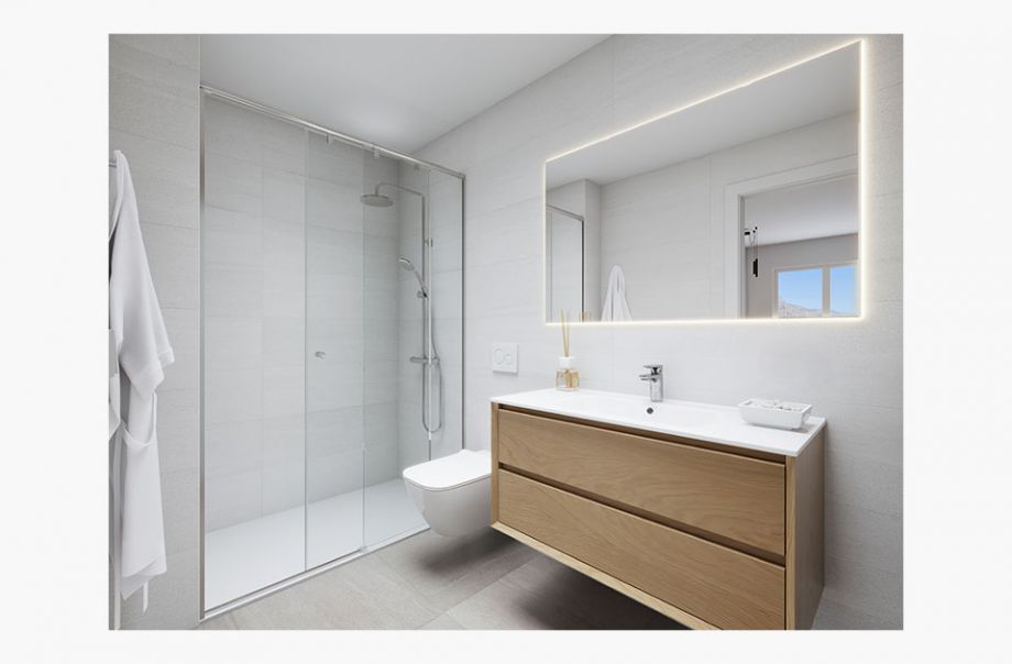 Los cuartos de baño han sido diseñados como espacios de bienestar, donde la funcionalidad se combina con una estética contemporánea y materiales de alta calidad. Cada baño transmite una sensación de equilibrio y confort, con un cuidado diseño que prioriza la amplitud visual, la luminosidad y la durabilidad.