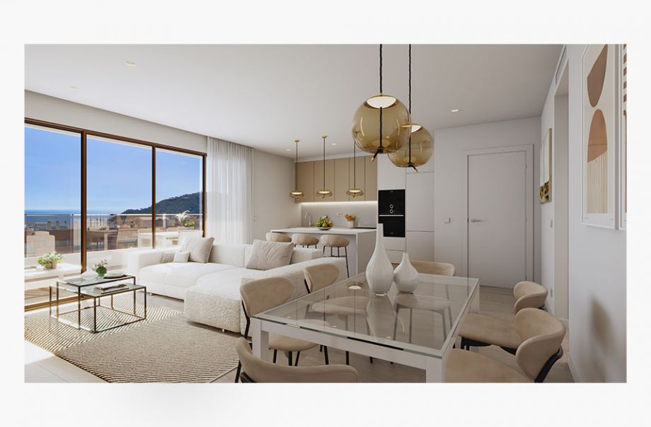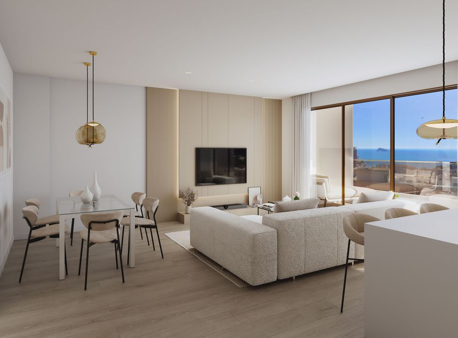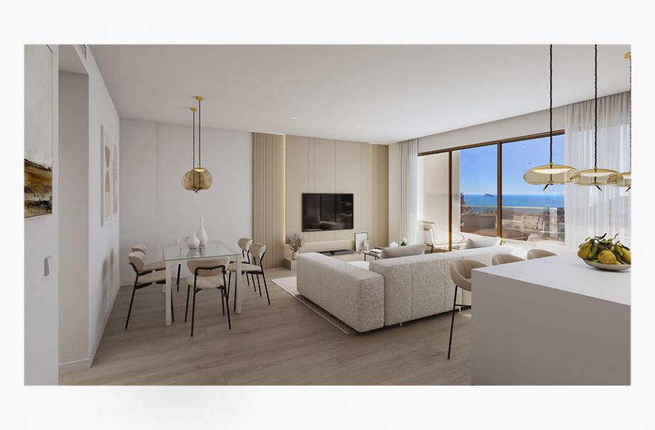 Descubre una nueva forma de vivir en la Cala de Finestrat, donde el diseño, la luz y la funcionalidad se unen para crear espacios interiores pensados para disfrutar cada momento. Esta exclusiva urbanización residencial en Benidorm ofrece apartamentos de 1, 2 y 3 dormitorios, además de espectaculares áticos con grandes terrazas, concebidos para adaptarse a distintos estilos de vida sin renunciar al confort ni a la elegancia. Las viviendas destacan por sus interiores amplios y luminosos, con distribuciones modernas que optimizan cada metro cuadrado. Los salones se integran de forma natural con las cocinas, generando estancias abiertas que favorecen la convivencia y multiplican la sensación de espacio. Los grandes ventanales permiten la entrada de abundante luz natural durante todo el día, conectando el interior con el entorno mediterráneo y creando ambientes cálidos y acogedores. Cada detalle ha sido seleccionado para ofrecer hogares actuales, eficientes y confortables, donde la calidad de los materiales, la estética moderna y la funcionalidad se combinan para crear espacios que invitan a vivirlos desde el primer día.